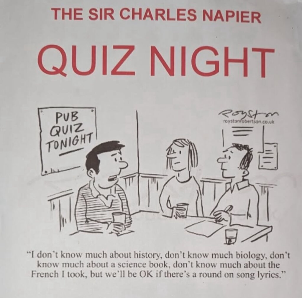 Join the Sir Charles Napier every Sunday for quiz Night
